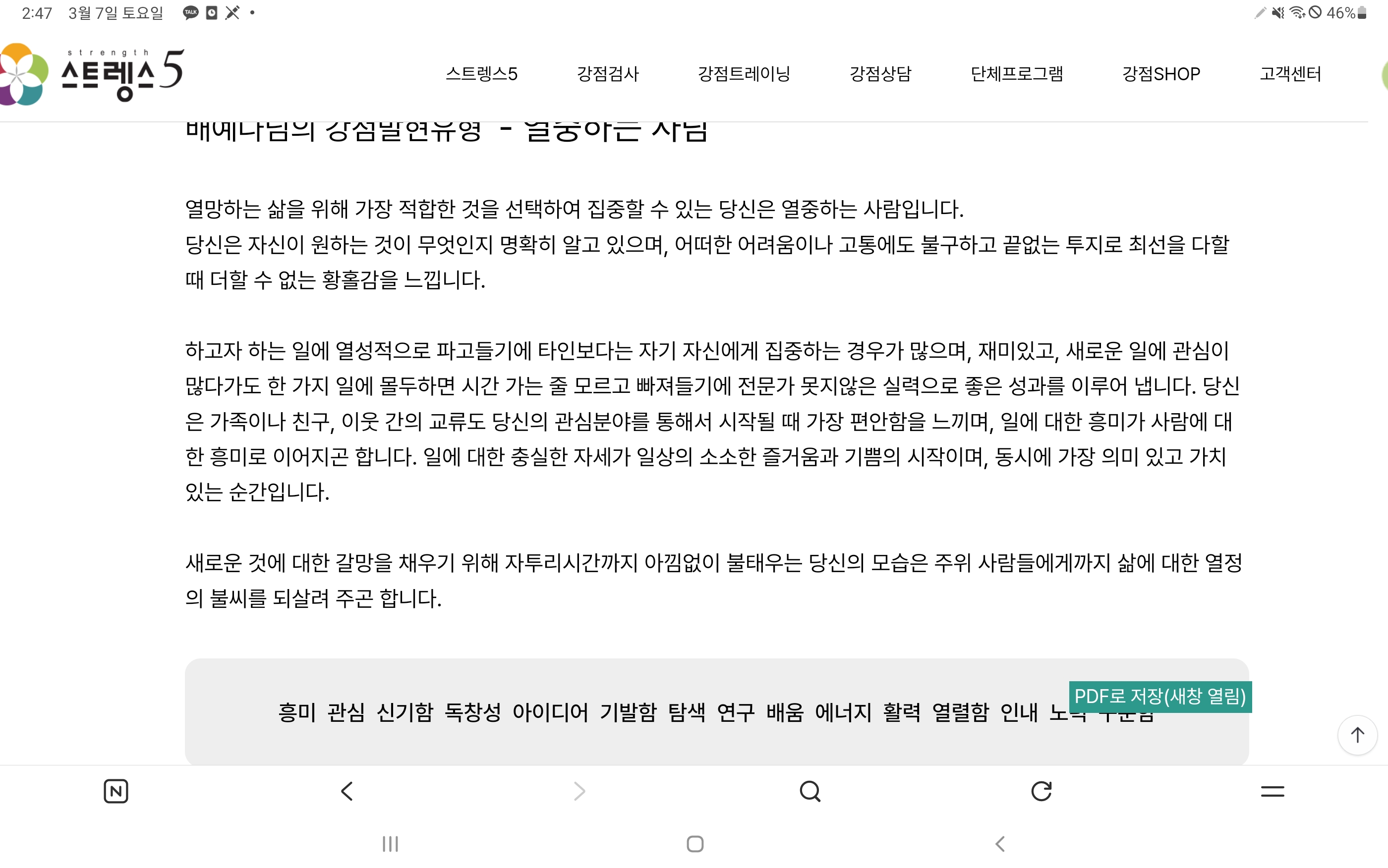 강추합니다~! 스트렝스5 강점 검사를 받아 보았다.